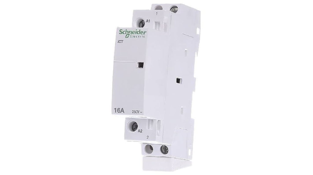 Contattore monofase Schneider Electric, serie Acti 9 iCT, 1 polo, 1 N/A, 16 A, bobina 12 V c.a., tensione nominale contatto 250 V c.a., terminali a vite, montaggio a pannello o su guida DIN, dimensioni 81 mm x 18 mm x 68 mm, temperatura operativa da -5°C a +60°C, grado di protezione IP20, contatti ausiliari incorporati, funzione relè a impulsi e giorno/notte. Codice costruttore A9C22011.