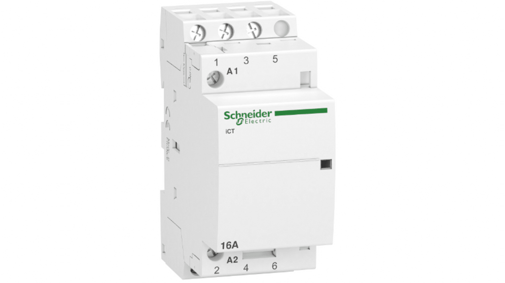 Contattore modulare Schneider Electric Acti9 ICT, 3 poli, 3 contatti normalmente aperti, corrente nominale 16 A, tensione di esercizio 400 VAC, tensione di controllo 240 V, conforme a IEC/EN 61095, compatibile con dispositivi ausiliari Acti9, utilizzabile per circuiti di controllo, illuminazione, riscaldamento e sistemi HVAC. Codice costruttore A9C22813.