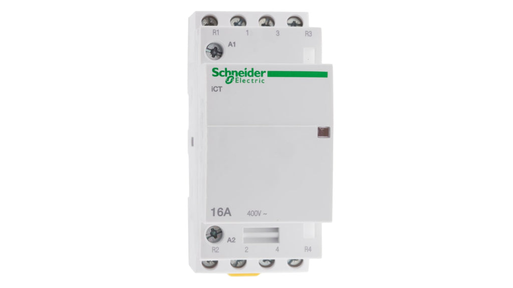 Contattore Schneider Electric, serie iCT, 4 poli, 2 NO + 2 NC, 16 A, bobina 230 V ca. Tensione nominale contatto 400 V c.a., corrente nominale contatto 16 A, tipo terminale vite, montaggio a pannello o su guida DIN, dimensioni 36 mm x 81 mm x 68 mm, temperatura operativa da -5°C a +60°C, grado di protezione IP20. Codice costruttore A9C22818.