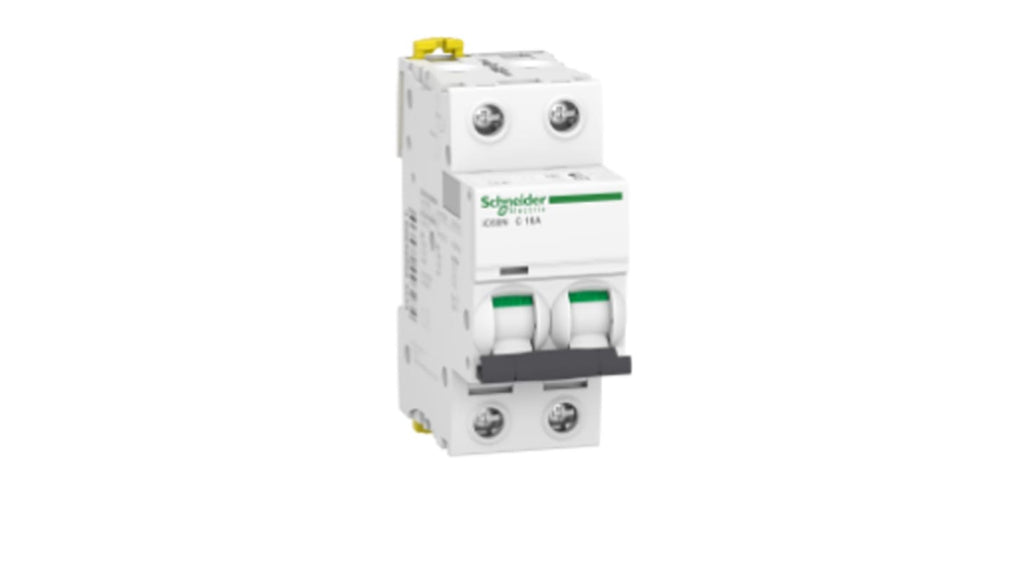 Interruttore magnetotermico Schneider Electric 2P 16A, Tipo C, corrente nominale 16 A, protezione contro cortocircuito e sovraccarico, montaggio su guida DIN, grado di protezione IP20, temperatura operativa da -35 a 70 gradi Celsius, modello A9F79216, serie IC60N, gamma Acti 9.
