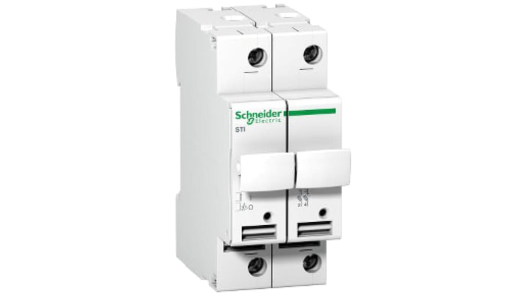 Sezionatore portafusibili Schneider Electric, corrente massima 10A, 2 poli, fusibile 10A, dimensioni fusibile 8,5 x 31,5mm, montaggio su guida DIN, temperatura operativa da -20°C a +60°C, morsetto a vite, serie Acti 9, configurazione corsa doppia. Codice costruttore A9N15650.