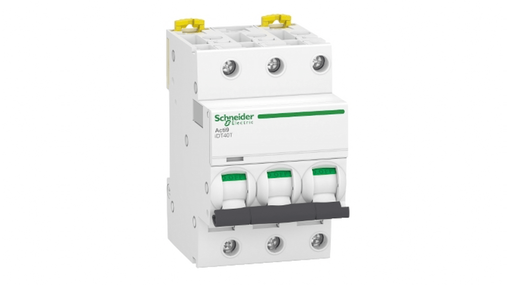 Interruttore magnetotermico 3 poli, 16A, Tipo C, tensione nominale 400V, capacità di interruzione 6 kA, umidità relativa 95% a 55 °C, temperatura operativa -25 a 70 °C, durata elettrica 20000 cicli, montaggio su guida DIN, bloccabile con lucchetto, conforme agli standard IEC/EN 60898-1 e 60947-2, classificato Schneider Green Premium. Codice costruttore A9P24316.