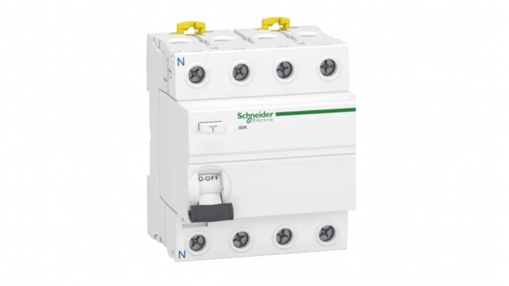 Interruttore automatico di corrente residua RCCB, 4 poli, 40A, sensibilità 300mA, tipo AC, tensione nominale 380-415V ca, montaggio guida DIN, umidità relativa 95% a 55°C, temperatura operativa -25 a 70°C, durata elettrica 20000 cicli, tensione di resistenza agli impulsi 4kV, bloccabile con lucchetto, conforme a EN/IEC 61008-1, classificato Schneider Green Premium. Codice costruttore A9R56440.