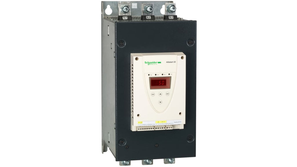 Avviatore soft-start digitale trifase, potenza nominale 110 kW, tensione 440 V c.a., corrente nominale 210 A, grado di protezione IP00. Funzione bypass integrata, comunicazioni fieldbus, sovraccarico elettronico regolabile, 3 ingressi logici programmabili, 1 ingresso PTC, 2 uscite relè, protezione termica motore, dimensioni 299 mm x 206 mm x 425 mm. Marchio Schneider Electric, codice ATS22C21Q.