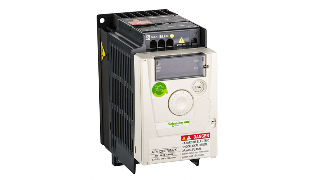 Avviatore a velocità variabile, potenza nominale 0,75 kW, tensione di alimentazione 240 V, fase 1, corrente nominale 4,2 A, montaggio in armadio, protocollo Modbus per connettività, compatibile con la serie ATV12, progettato per prestazioni ottimali in applicazioni monofase. Marchio Schneider Electric, codice costruttore ATV12H075M2X.