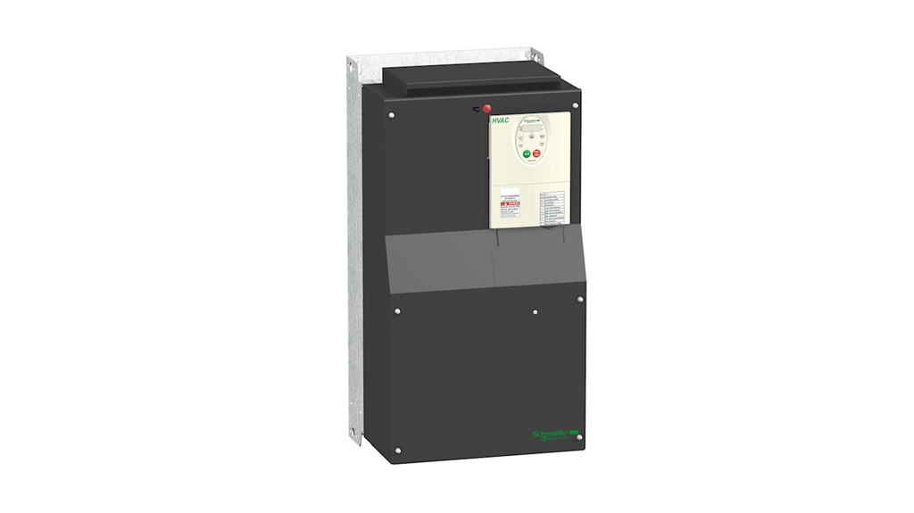 Avviatore a velocità variabile Schneider Electric, potenza nominale 55 kW, tensione 480 V, 3 fasi, corrente nominale 89 A, frequenza di uscita 0.5 a 200Hz, filtro EMC classe C2 integrato, frequenza di commutazione 8 kHz, grado di protezione IP21, compatibile con Modbus, BACnet, APOGEE FLN, Metasys N2 e LonWorks, assemblaggio con dissipatore di calore, per uso con motori in corrente alternata.