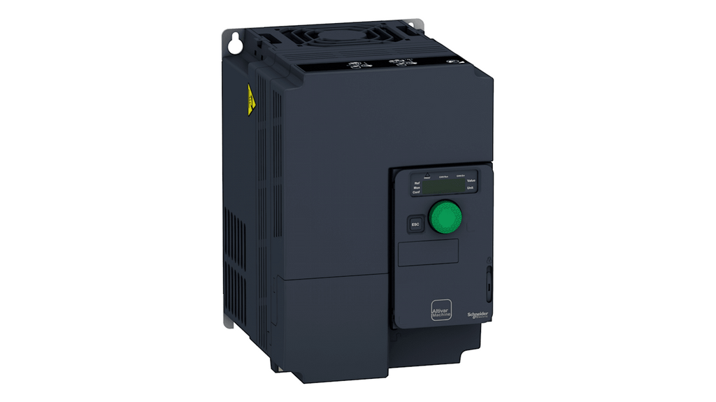 Avviatore a velocità variabile Schneider Electric, potenza 7,5 kW, tensione 600 V, 3 fasi, corrente nominale 10,5 A, 11,6 A, grado di protezione IP20, compatibile con motori in c.a., comunicazione field bus CANopen e Modbus seriale, tolleranza tensione rete 10%, tolleranza frequenza rete 5%, dotato di funzione STO.