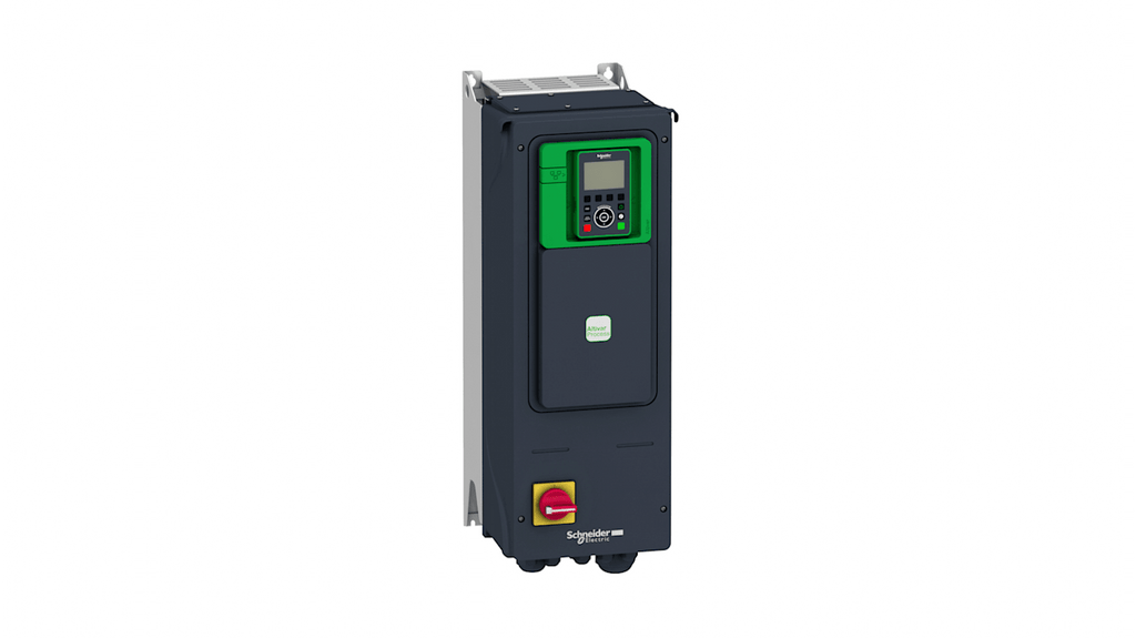 Avviatore a velocità variabile Schneider Electric, potenza nominale 18.5 kW, tensione di alimentazione 480 V, 3 fasi, corrente nominale 39,2 A, frequenza di uscita 500 Hz, grado di protezione IP54, comunicazione Modbus seriale, conforme agli standard di settore, integrazione semplice in ambienti PLC, dotato di funzione STO.