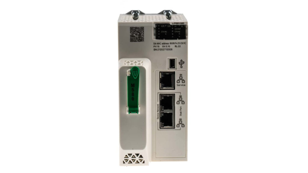 Processore autonomo per automazione modulare Modicon M580, 1024 I/O, tensione 24 V c.c., interfaccia Ethernet, programmazione tramite Mini USB, memoria 384 kB, capacità programma 4 MB, operatività da 0 a 60 gradi Celsius, dimensioni 64,6 x 134,6 x 130,3 mm, montaggio a rack, supporta moduli I/O X80, occupa due slot su backplane. Codice costruttore BMEP581020, marchio Schneider Electric.