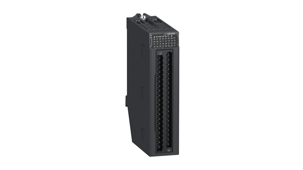 Modulo di espansione PLC, 32 ingressi/discreti, compatibile con Modicon X80, tensione di alimentazione 24 V CC, tipo di ingresso isolato, dissipatore di corrente logico positivo, sorgente di corrente, grado di protezione IP20, elevate garanzie di tensione e stato di corrente, parallelizzazione delle uscite per funzionalità efficiente. Codice costruttore: BMXDDI3232, marchio: Schneider Electric.