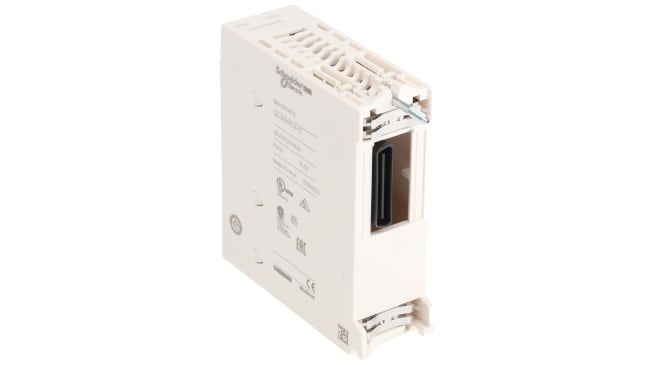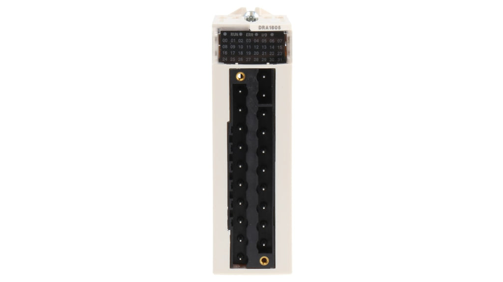 Modulo I/O PLC per Serie M340, 16 uscite, tipo uscita separata relè, tensione di alimentazione 240 V, consumo corrente 100 mA, temperatura operativa massima +60°C, grado di protezione IP20, connettore a 20 vie per 20 sensori e attuatori, peso 150 g, morsettiere rimovibili. Progettato per sistemi robotici e di automazione. Codice costruttore BMXDRA1605, marchio Schneider Electric.