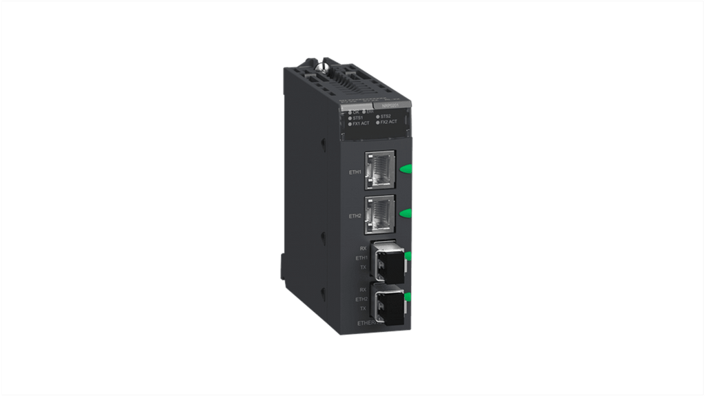 Modulo di sicurezza per comunicazione ottica. Tensione di alimentazione 24 V, compatibile con Modicon X80. Dotato di 2 porte RJ45 e 2 porte in fibra ottica, funzionalità hot swap, range operativo da 0 a 15000 m. Design compatto, conforme a vari standard e certificazioni per garantire qualità e prestazioni superiori.