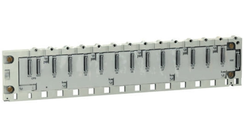 Backplane per guida DIN Schneider Electric, serie Modicon M340, per Modicon M340. Tipo accessori: Backplane, montaggio su guida DIN, massima temperatura operativa: +60°C, dimensioni: 503,2 x 103,7 x 19 mm. Funzione meccanica: installazione moduli PLC, montaggio su pannello o guida DIN. Funzione elettrica: distribuzione alimentatori e segnali, moduli Hot Swap, bus X integrato. Codice costruttore: BMXXBP1200.