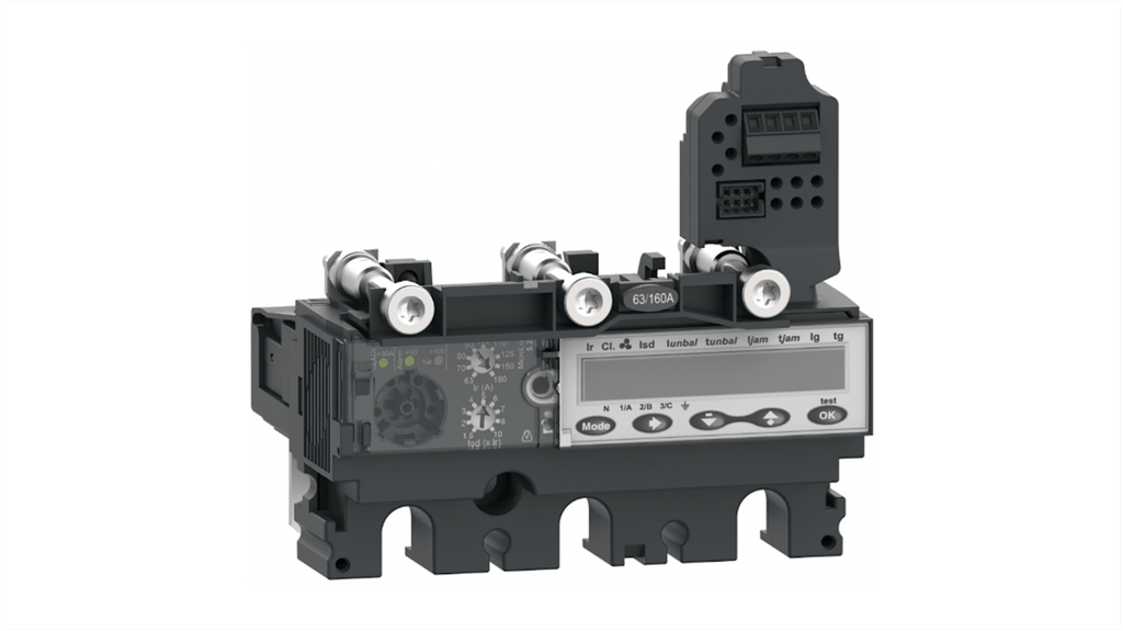 Unità di scatto elettronica per ComPacT NSX100/160/250, protezione regolabile a lungo termine contro sovraccarichi, protezione regolabile e istantanea contro cortocircuiti, pre-allarme di dispersione di terra con modulo SDx opzionale, LED verde per stato di attivazione, modulo display per misurazione energia e regolazioni. Compatibile con ComPacT di nuova generazione.