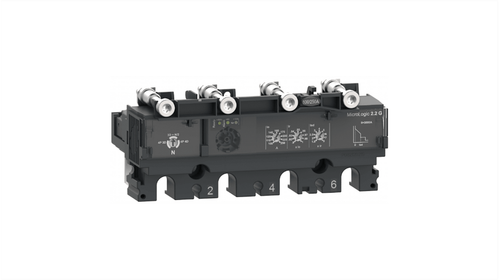 Unità di scatto elettronica per interruttori automatici ComPacT NSX100/160/250, protezione regolabile contro sovraccarichi e cortocircuiti, pre-allarme di dispersione di terra con modulo SDx opzionale, LED verde per stato di attivazione, modulo display per misurazione energia e regolazioni. Accessorio per gamma ComPacT di nuova generazione. Codice costruttore C1042G040, marchio Schneider Electric.