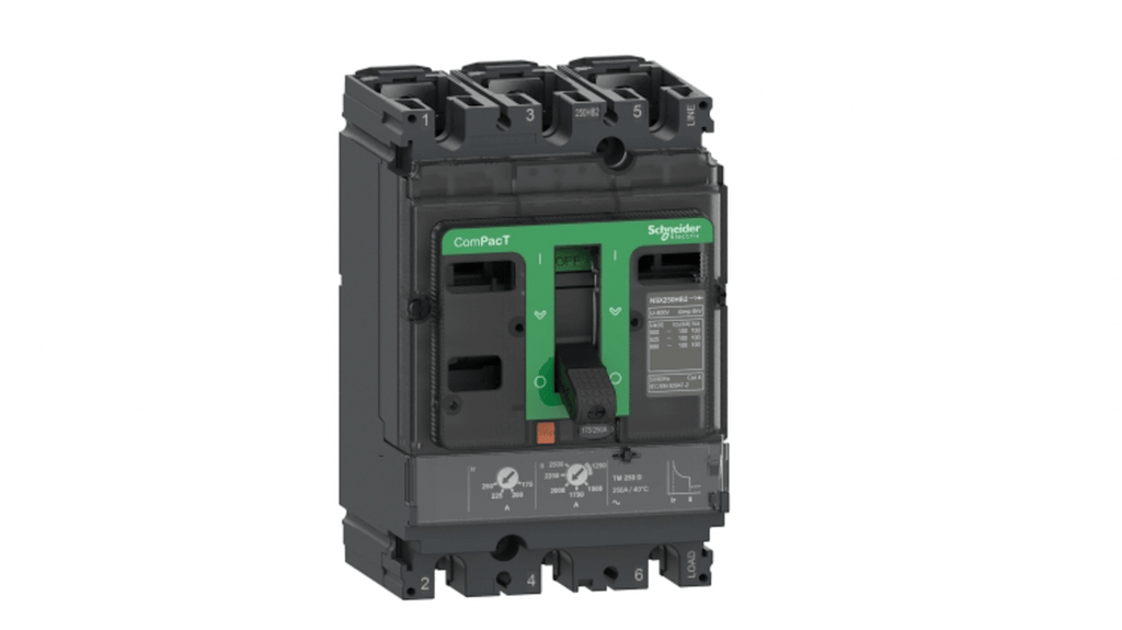 Interruttore magnetotermico scatolato, 3 poli, 63A, montaggio fisso, progettato per ottimizzare spazio e capacità di interruzione. Protezione da sovraccarico termico regolabile e magnetica fissa. Installazione semplificata, riduzione del 40% dei tempi di cablaggio, paletta ergonomica per operazioni manuali. Marchio: Schneider Electric, codice costruttore: C10H3TM063.