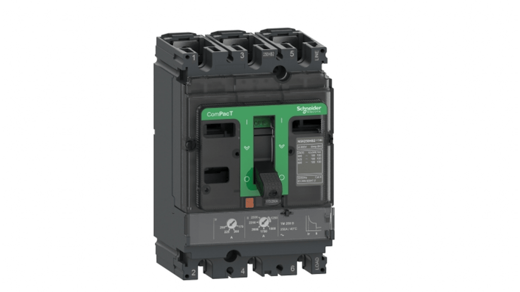 Interruttore magnetotermico scatolato, 3 poli, 80A, montaggio fisso, progettato per ottimizzare spazio e capacità di interruzione, protezione da sovraccarico termico regolabile, protezione magnetica fissa, design ergonomico per installazione facilitata, interruttore a levetta ergonomico, scheda a firma verde Schneider Electric, riduzione del 40% dei tempi di cablaggio.