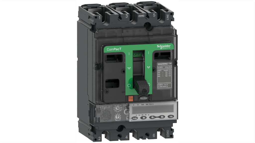 Interruttore magnetotermico scatolato, 3 poli, 40A, montaggio fisso, progettato per ottimizzare spazio e capacità di interruzione, protezioni regolabili a lungo e breve termine, protezione istantanea fissa, unità di attivazione MicroLogic 5.2E, conforme a standard internazionali IEC 60947, CCC, EAC.