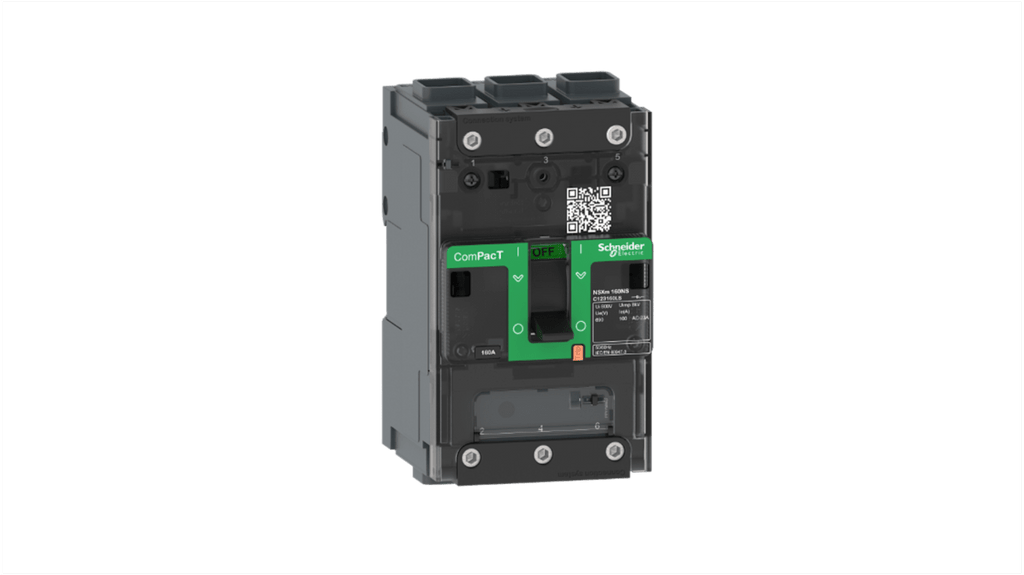 Sezionatore completo a 3 poli Schneider Electric, corrente nominale fusibile 100A, integrato, ComPacT di nuova generazione, serie NSXmNA, installazione semplificata, riduzione del 40% dei tempi di cablaggio, nuova paletta ergonomica per funzionamento manuale facilitato.