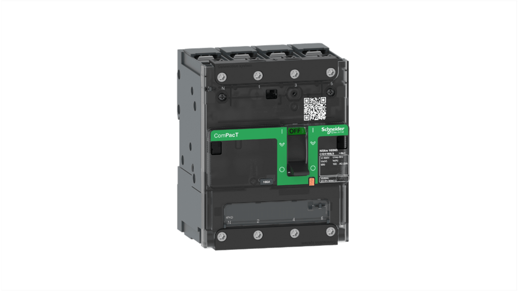 Sezionatore completo a 4 poli Schneider Electric, corrente nominale fusibile 100A, integrato, ComPacT di nuova generazione, serie NSXmNA. Installazione semplificata, riduzione del 40% dei tempi di cablaggio, nuova paletta ergonomica per un funzionamento manuale facilitato. Richiede protezione a monte, compatibile con accessori interruttori automatici ComPacT NSX.