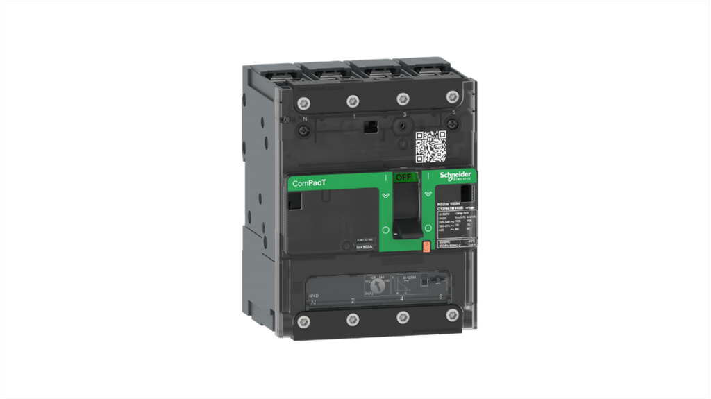 Interruttore magnetotermico scatolato, 4 poli, 16A, montaggio fisso, progettato per ottimizzare spazio e capacità di interruzione. Protezione da sovraccarico termico regolabile e magnetica fissa. Installazione semplificata, riduzione del 40% dei tempi di cablaggio, paletta ergonomica per operazioni manuali. Marchio: Schneider Electric, codice costruttore: C11F4TM016B.
