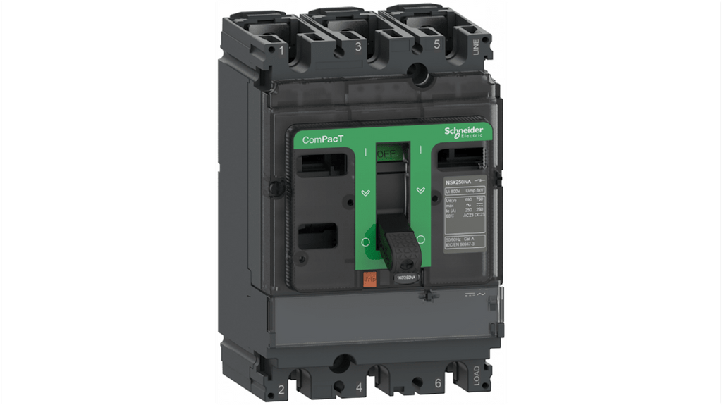 Sezionatore completo a 3 poli Schneider Electric, corrente nominale 160A, integrato, serie ComPacT di nuova generazione NSX160NA. Richiede protezione a monte, design ergonomico per installazione facilitata, nuovo interruttore a levetta ergonomico. Riduzione stimata del 40% dei tempi di cablaggio per costruttori di pannelli. Scheda a firma verde per l'intera gamma ComPacT.