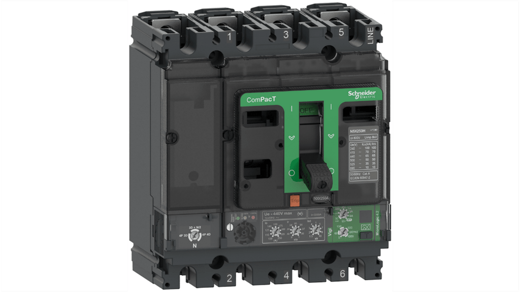 Interruttore magnetotermico scatolato, 4 poli, 100A, montaggio fisso, progettato per ottimizzare spazio e capacità di interruzione, unità di attivazione MicroLogic 4.2, protezioni regolabili a lungo e breve termine, protezione istantanea fissa, conforme a standard internazionali IEC 60947, CCC, EAC, serie NSX160N, nuova generazione ComPacT.