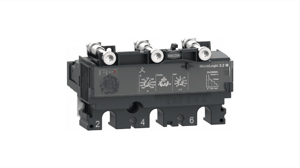Unità di scatto Schneider Electric per interruttori automatici ComPacT NSX250, protezione regolabile a lungo termine contro sovraccarichi, protezione regolabile e istantanea contro cortocircuiti, pre-allarme di dispersione di terra con modulo SDx opzionale, LED verde per stato di attivazione, modulo display per misurazione energia e regolazioni. Compatibile con interruttori automatici ComPacT di nuova generazione.