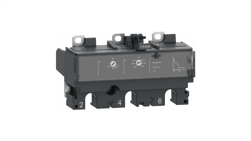 Unità di scatto Schneider Electric per ComPacT NSX 250 DC, protezione regolabile a lungo termine contro sovraccarichi, protezione regolabile e istantanea contro cortocircuiti, pre-allarme di dispersione di terra con modulo SDx opzionale, LED verde per stato di attivazione, modulo display per misurazione energia e regolazioni. Compatibile con gamma ComPacT di nuova generazione.