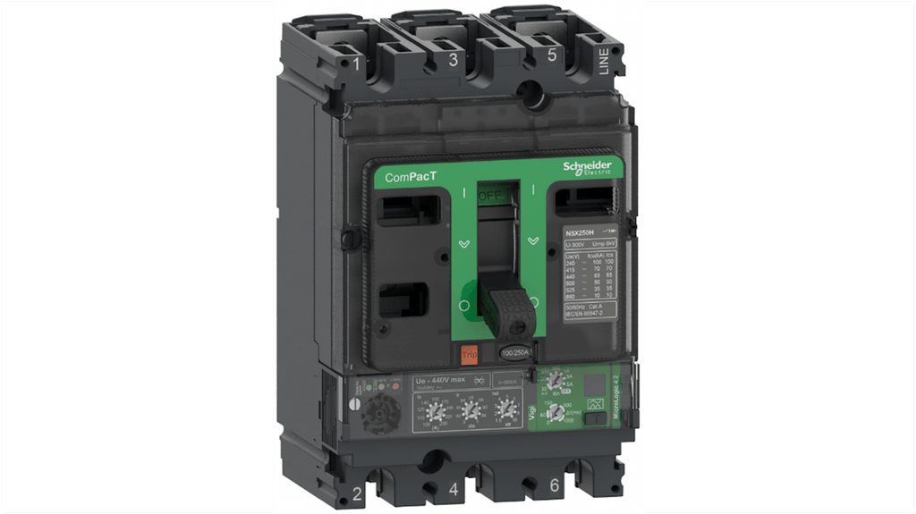 Interruttore magnetotermico scatolato, 3 poli, 160A, montaggio fisso. Unità di attivazione elettronica MicroLogic 4.2, protezione regolabile contro sovraccarichi e cortocircuiti, LED verde Ready, pre-allarme di dispersione di terra opzionale. Design ergonomico per facile operatività e riduzione del 40% nei tempi di cablaggio. Marchio Schneider Electric, codice costruttore C25N34V160.