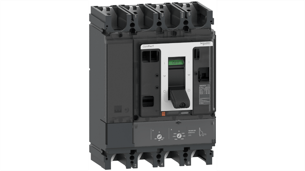 Interruttore magnetotermico scatolato, 4 poli, 320A, montaggio fisso, progettato per ottimizzare spazio e capacità di interruzione, protezione regolabile a lungo termine, a breve termine e istantanea, design ergonomico per installazione facilitata, nuovo interruttore a levetta ergonomico, scheda a firma verde Schneider Electric, riduzione stimata del 40% dei tempi di cablaggio per costruttori di pannelli.