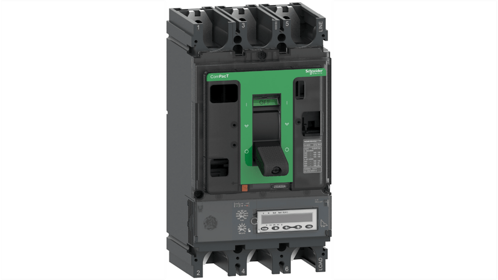 Interruttore magnetotermico scatolato, 3 poli, 400A, montaggio fisso, progettato per ottimizzare spazio e capacità di interruzione. Unità di attivazione MicroLogic 5.3E, protezione regolabile a lungo termine, a breve termine e istantanea. Riduzione stimata del 40% dei tempi di cablaggio, design ergonomico per installazione facilitata. Marchio Schneider Electric, gamma ComPacT, serie NSX.