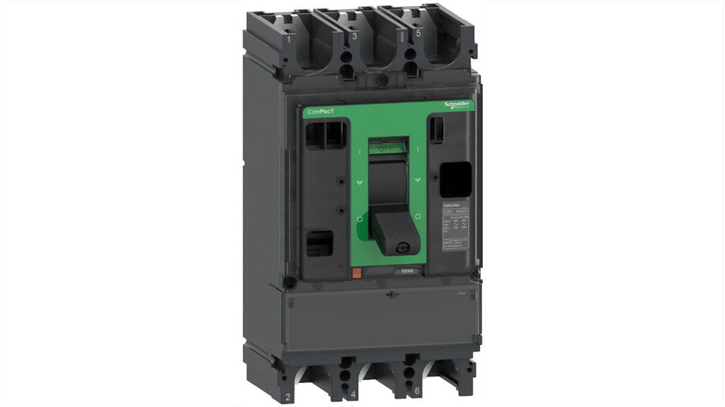 Sezionatore completo a 3 poli Schneider Electric, corrente nominale fusibile 630A, integrato, serie ComPacT di nuova generazione NSX630NA, progettato per controllare e isolare circuiti di distribuzione elettrica. Riduzione stimata del 40% dei tempi di cablaggio, installazione facilitata grazie al design ergonomico della piastra frontale e interruttore a levetta ergonomico.