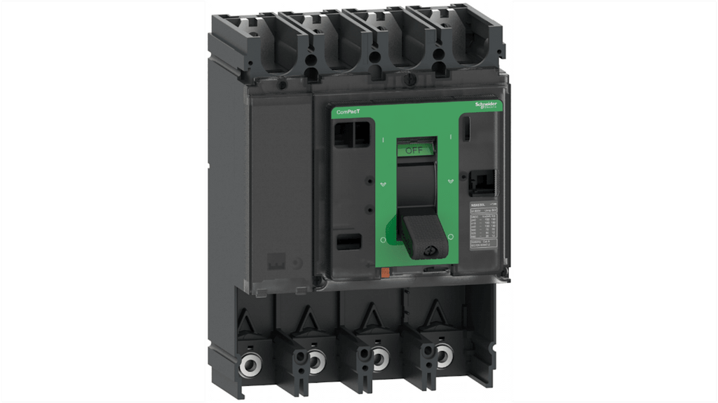 Interruttore magnetotermico scatolato, 4 poli, 630A, montaggio fisso, telaio di base progettato per ottimizzare spazio e capacità di interruzione, compatibile con unità di attivazione di qualsiasi tipo, design ergonomico per installazione facilitata, paletta ergonomica per funzionamento manuale semplificato, accessori opzionali disponibili. Marchio: Schneider Electric, codice costruttore: C63S4.