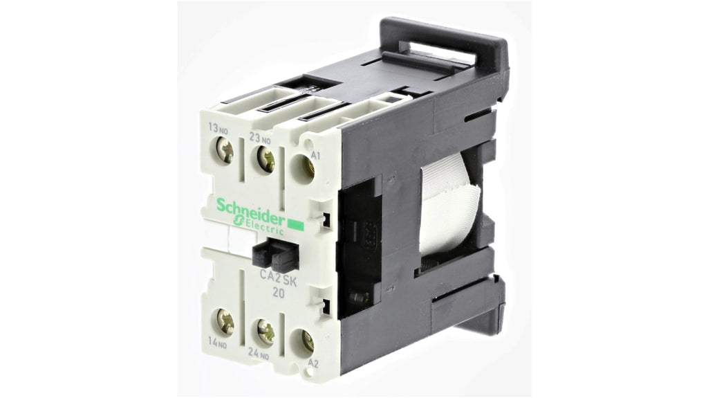 Contattore Schneider Electric, serie CA2SK, 10 A, 2 N/A, mini-relè di controllo SK, tensione nominale contatto 690 V c.a., corrente nominale contatto 10 A, montaggio su guida DIN da 35 mm, larghezza 27 mm, morsetti a vite, dimensioni 27 mm x 56 mm x 55.5 mm, temperatura ambiente fino a 55 °C.