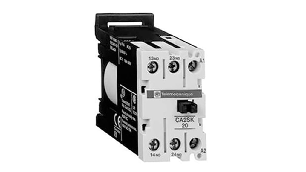 Relè contattore per guida DIN, 2 poli, 2 NO, corrente nominale 10 A, tensione bobina 110 V c.a., tensione nominale contatto 690 V c.a., morsetti a vite, dimensioni 27 mm x 56 mm x 55.5 mm, temperatura operativa da -25°C a +50°C, serie CA2S, compatibile con applicazioni HVAC, imballaggio, gas e petrolio, manipolazione materiali.