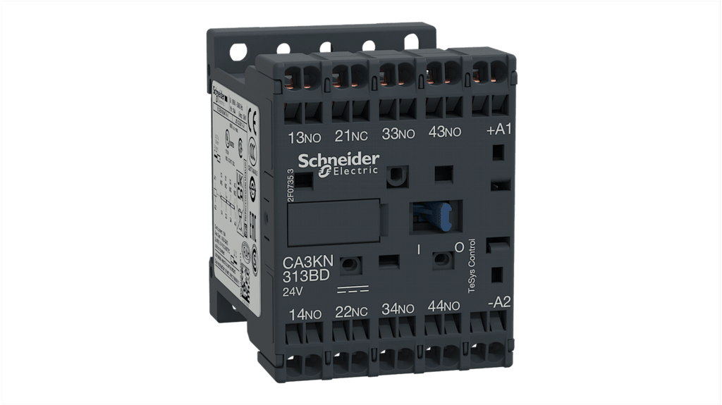 Relè di controllo Schneider Electric, 2 NA + 2 NC, 10 A, tensione di controllo 24 V c.c., potenza nominale 3 W, corrente nominale contatto 10 A, funzionamento fino a 180 cicli al minuto, temperatura ambiente da -25 a +50 gradi Celsius, collegamento tramite terminali a molla, montaggio su guida DIN o fissaggio a vite, dimensioni ottimizzate per risparmio di spazio, compatibile con ampia gamma di accessori.