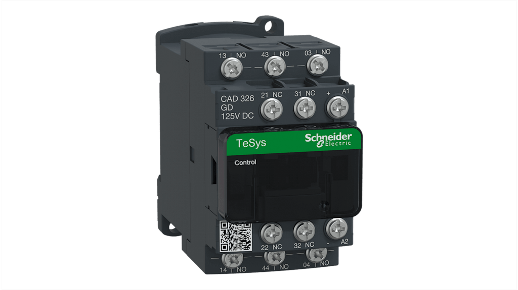 Relè di controllo Schneider Electric, 3 NA + 2 NC, 10 A, corrente nominale contatto 10 A, potenza nominale 5,4 W, tensione di controllo 125 V, temperatura ambiente -40/+60 °C, velocità di funzionamento fino a 180 cicli/min, compatibile con tutte le tensioni presenti sul mercato, diversi modi di collegamento. Codice costruttore CAD326GD.