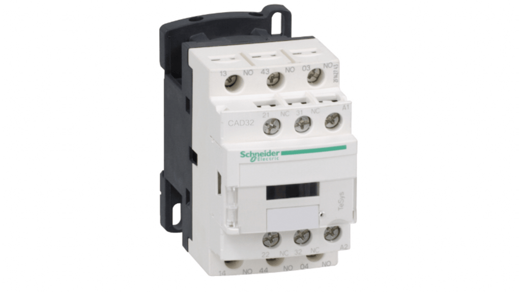 Relè di controllo Schneider Electric, 5 contatti (3 NA + 2 NC), corrente nominale 10 A, tensione 690 V, per carichi elettromagnetici AC-15/DC-13. Circuito di controllo 440 V 50/60 Hz, collegamento a morsetti a vite. Dimensioni compatte 45 mm, montaggio su guida DIN 35 mm o mediante vite. Operatività fino a 180 cicli/min, temperatura ambiente -40 °C/+60 °C, certificazioni IEC, UL, CSA, CCC, EAC, Marine, prodotto Green Premium.