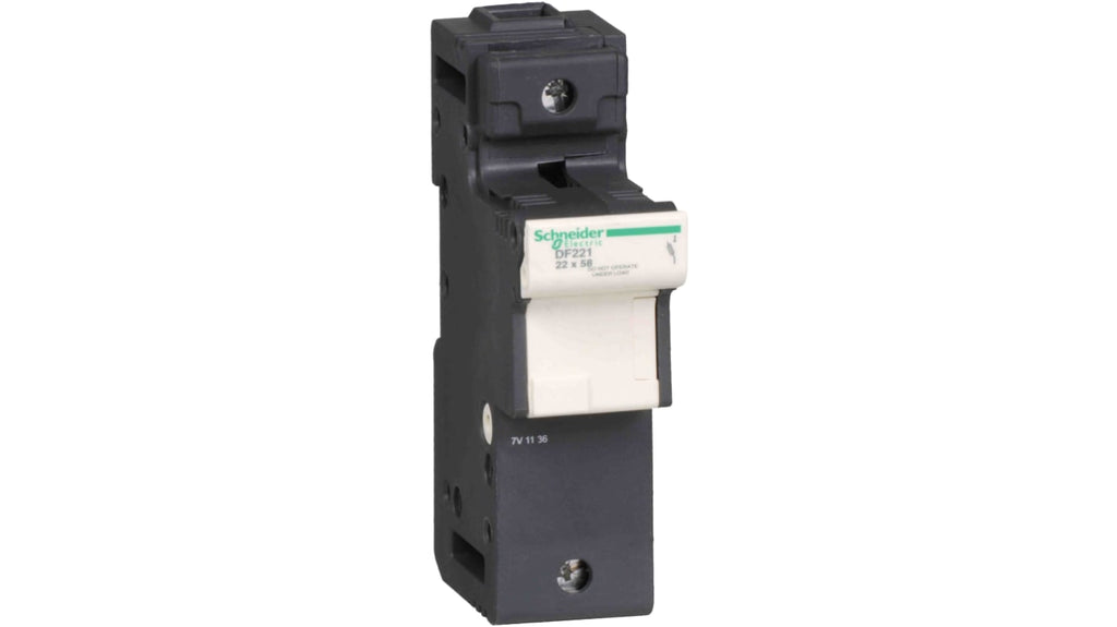 Sezionatore portafusibili modulare per la protezione dei circuiti di controllo, 1 polo, fusibile 22 x 58mm, corrente nominale fino a 125A, montaggio su guida DIN 35mm, collegamento mediante morsetti a vite, dimensioni compatte (larghezza 35mm), grado di protezione IP20, temperatura operativa da -20°C a +60°C, certificazione multi-standard IEC, UL, CSA, EAC, prodotto Green Premium, venduto in lotti di 6 unità.