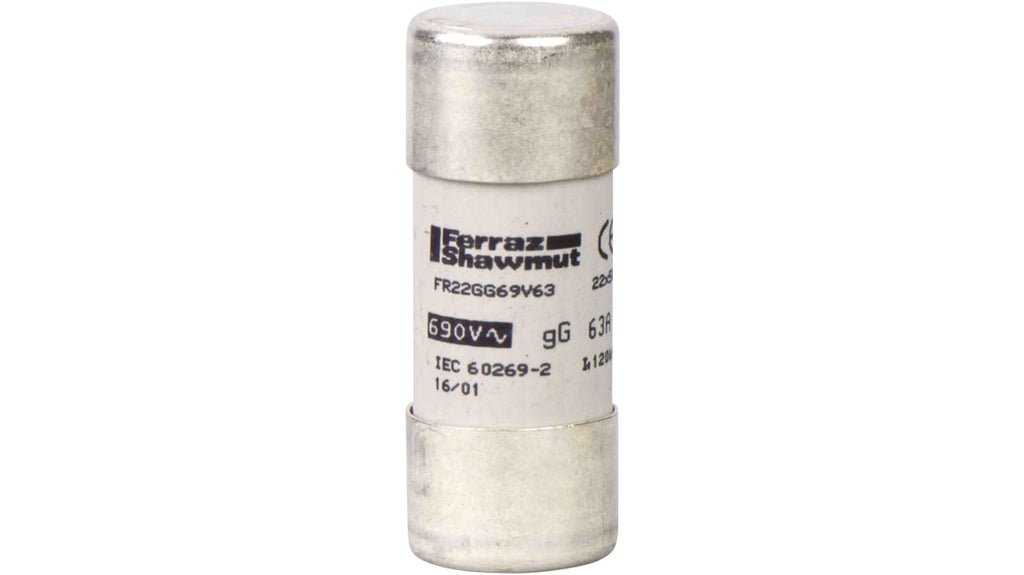 Fusibile a cartuccia Schneider Electric, 63A, 500V, dimensioni 22 x 58mm. Prodotto conforme RoHS, progettato per dispositivi con fusibili e sezionatori TeSys GS. Protegge contro sovraccarichi termici e sovracorrenti magnetiche. Fusibile cilindrico tipo NFC, venduto in set da 10 parti.