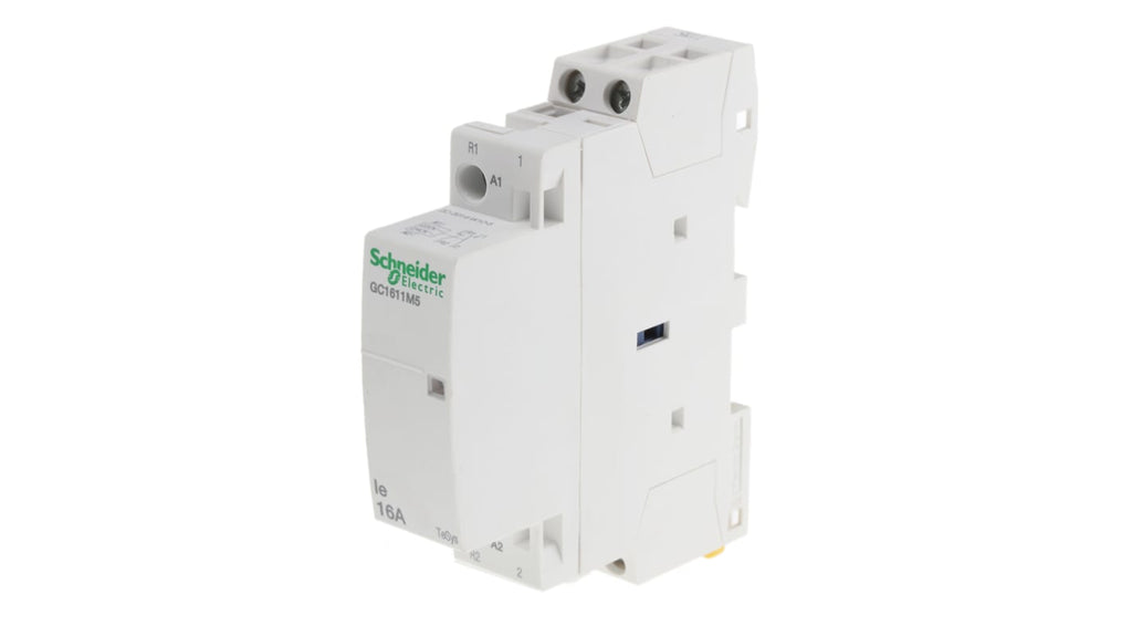 Contattore Schneider Electric, serie GC16, 2 poli, 1 NO + 1 NC, 16 A, bobina 230 V ca. Tensione nominale contatto 250 V ca, corrente nominale contatto 16 A, dimensioni 17.5 mm x 81 mm x 65 mm, temperatura operativa da -5°C a +50°C, montaggio a pannello o su guida DIN, grado di protezione IP20, contatti ausiliari incorporati, configurazione a doppia interruzione dei poli.