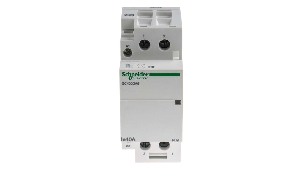 Contattore modulare Schneider Electric, serie TeSys GC, 2 poli, 2 N/A, corrente nominale 40 A, tensione bobina 230 V ca, tensione nominale contatto 250 V ca, contatti ausiliari incorporati, montaggio a pannello o su guida DIN, dimensioni 81 mm x 35 mm x 65 mm, temperatura operativa da -5 a +50 gradi, tipo di terminale a vite, isolamento di classe 2, vita utile elettrica 100000 cicli.