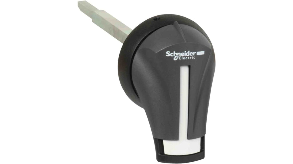 Maniglia di funzionamento esterna per TeSys GS Schneider Electric, codice GS2AH515, colore nero con piastra frontale grigia, bloccabile con lucchetto, montaggio su sportello, grado di protezione IP55, per uso con GS 32-63A, da completare con albero per operatore esterno GS2AE (lunghezze disponibili da ordinare separatamente), priva di metalli pesanti e mercurio.