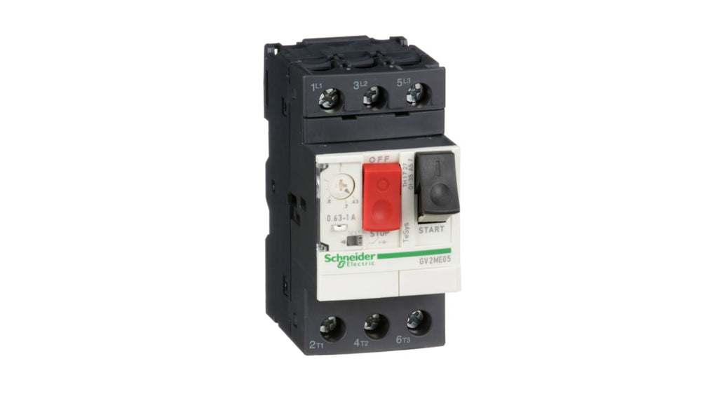 Interruttore automatico per motori Schneider Electric TeSys, 690 V, corrente nominale da 0,63 a 1 A, 3 poli, tecnologia di attivazione termico-magnetica, grado di protezione IP20, temperatura operativa da -20 a 60 gradi Celsius, frequenza di rete 50/60 Hz. Componente di protezione motore, design compatto e robusto.