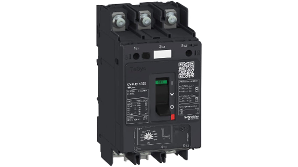 Interruttore automatico termico magnetico per motore, 3 poli, corrente nominale 115 A, tensione nominale 690 V c.a., capacità di rottura 10 kA a 660-690 V c.a., dimensioni 81 x 116 x 155 mm, larghezza 116 mm, profondità 155 mm, lunghezza complessiva 81 mm, serie GV4LE, gamma TeSys. Codice costruttore GV4LE115S6, marchio Schneider Electric.