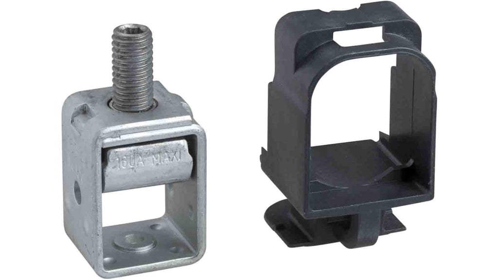 Connettore per cavo TeSys GV, per interruttori automatici di motori GV5 e GV7, codice GV7AC021, corrente nominale contatto 150 A, collegamento tramite morsetti a vite, per cavi con sezione 1,5-95 mm², set di 3 unità, conformità Green Premium (RoHS/REACH), privo di mercurio.