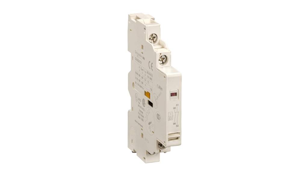 Contatto ausiliario Schneider Electric, 2 contatti, 2 N/C, montaggio laterale, serie GVAD. Codice costruttore GVAD0101. Tipo terminale a vite, tensione nominale contatto 240 V c.c., 690 V c.a. Durata meccanica 100000 cicli. Fissaggio laterale anteriore, compatibile con contattori TeSys. Adatto per spazi ristretti, morsetti flessibili per cavi. Applicazioni in aree sensibili al rumore e sistemi di controllo semplici.