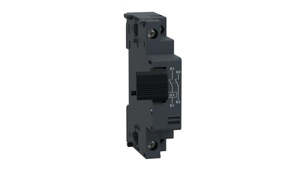 Dispositivo di sicurezza Schneider Electric con rilascio di sottotensione, TeSys GV2 per uso con GV2ME, tensione di alimentazione 415 - 440 V c.a., tempo di funzionamento 10-15 ms, conforme a IEC 60947-1, vari collegamenti con morsetti a vite, fattore di carico 100%, durata meccanica 30000 cicli, sostenibile.