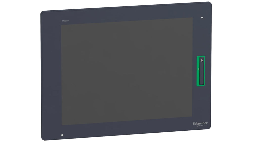 Display HMI touch screen, 15 pollici, serie HMIDT, Magelis GTU, tecnologia TFT, risoluzione 1024 x 768 pixel, processore X86 a 1.3 GHz, memoria onboard 2 GB, 512 kB, interfacce Ethernet, seriale, USB, 6 porte, protezione IP66/IP67, temperatura operativa da 0 a 60 gradi Celsius, dimensioni 397 x 296 x 67 mm, alimentazione 12-24 V, retroilluminazione presente.